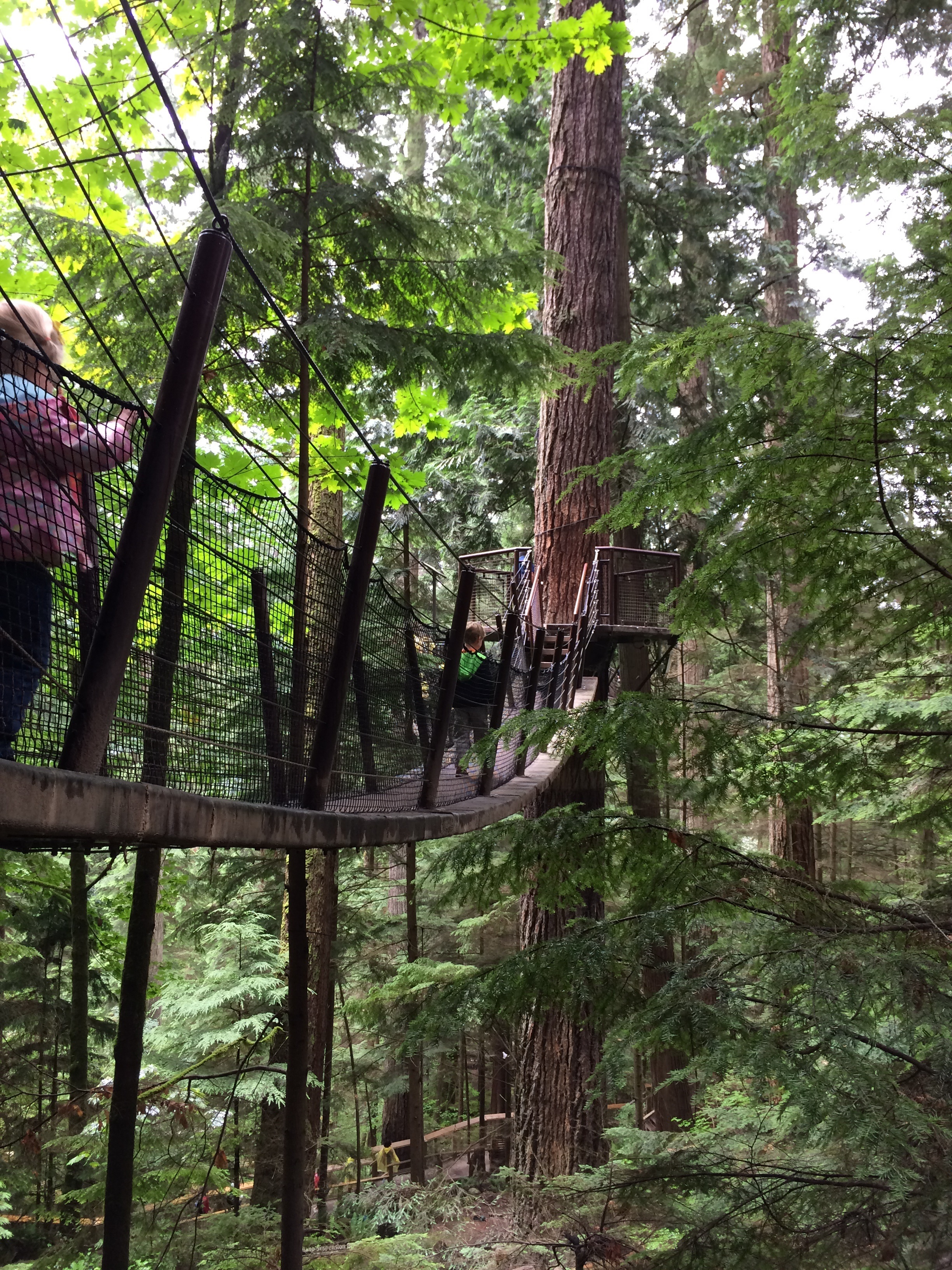 Another great thing to do in Vancouver – with just a short bus ride (free) – was the Capilano Suspension Bridge Park. Once again this is not for the faint of heart. As the name states, this is a MASSIVE suspension bridge. There are also lots of walking paths, a high tree top adventure and the cliff walk – all of which we did!